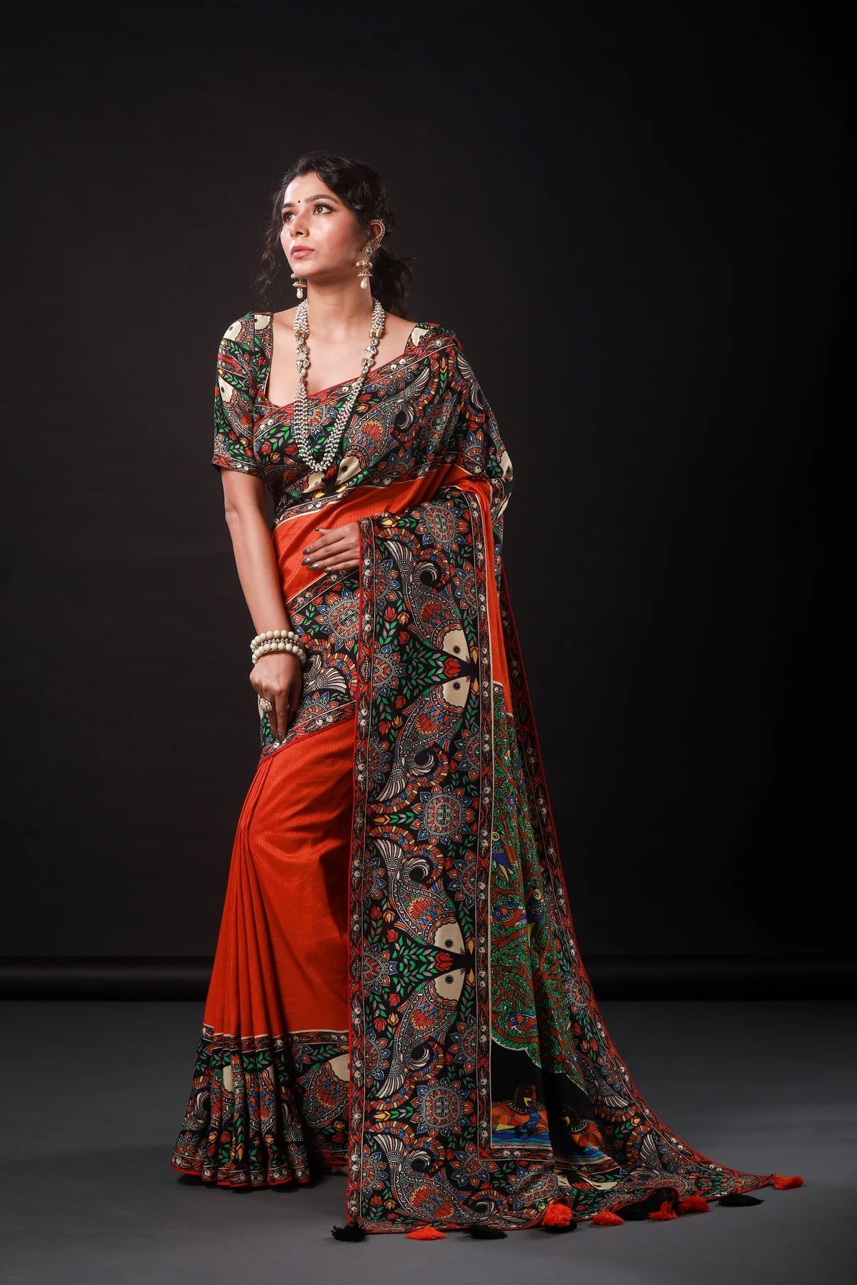 • ট্যাসেল আঁচল এর সাথে ট্যাসেল এর কাজ করা হয়েছে।