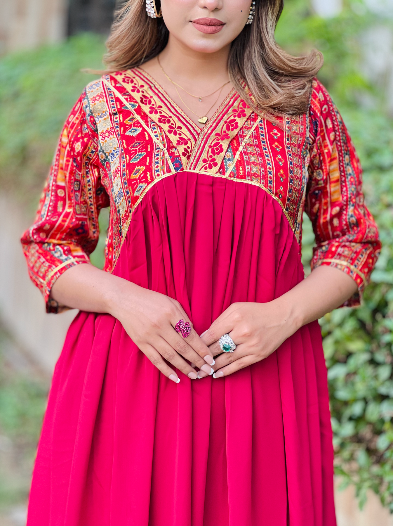 গুজরাটি আনারকলি স্টিচ টু পিস সেট (সেলাই এর কোন ঝামেলা নেই)
