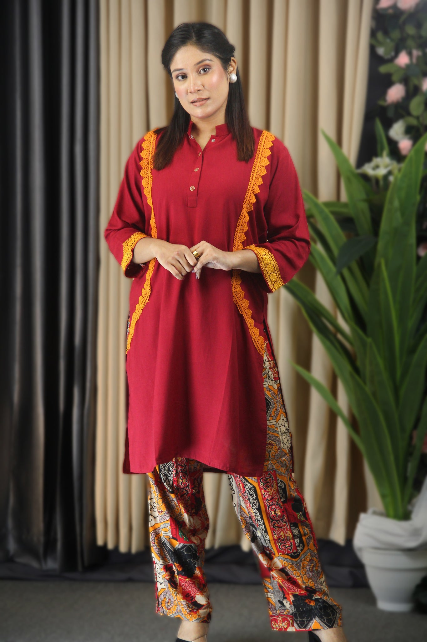 রেডিমেড টু পিস কো-অর্ড পিস (সেলাই এর কোন ঝামেলা নেই)।